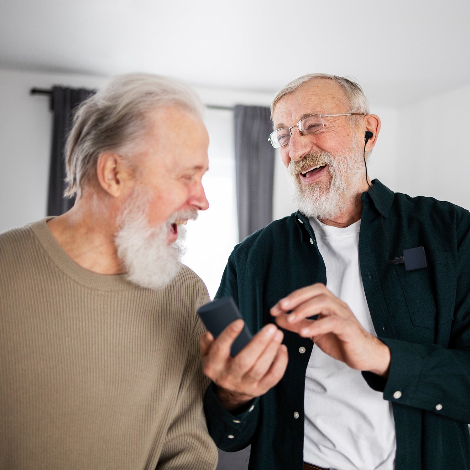 Wear the hearing aids, clip them to your collar and put the earphones into your ears.